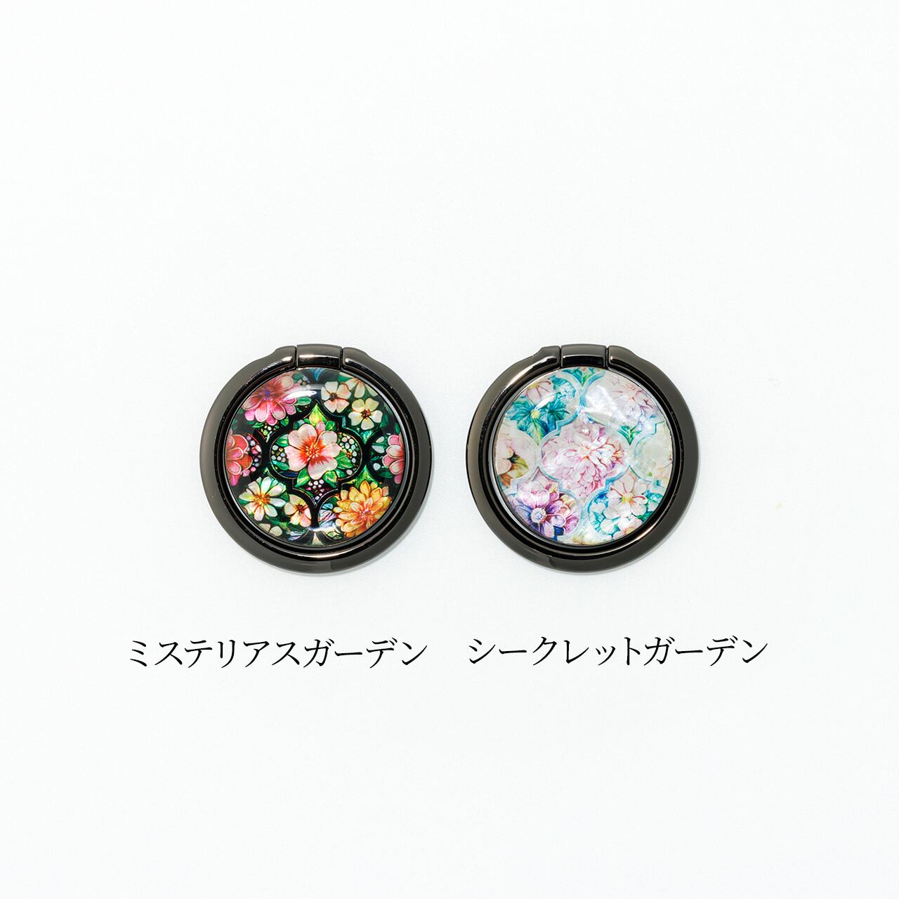 天然貝 螺鈿アート シェル ★ スマホリング・バンカーリング ( ミステリアスガーデン/シークレットガーデン )|水平360度回転