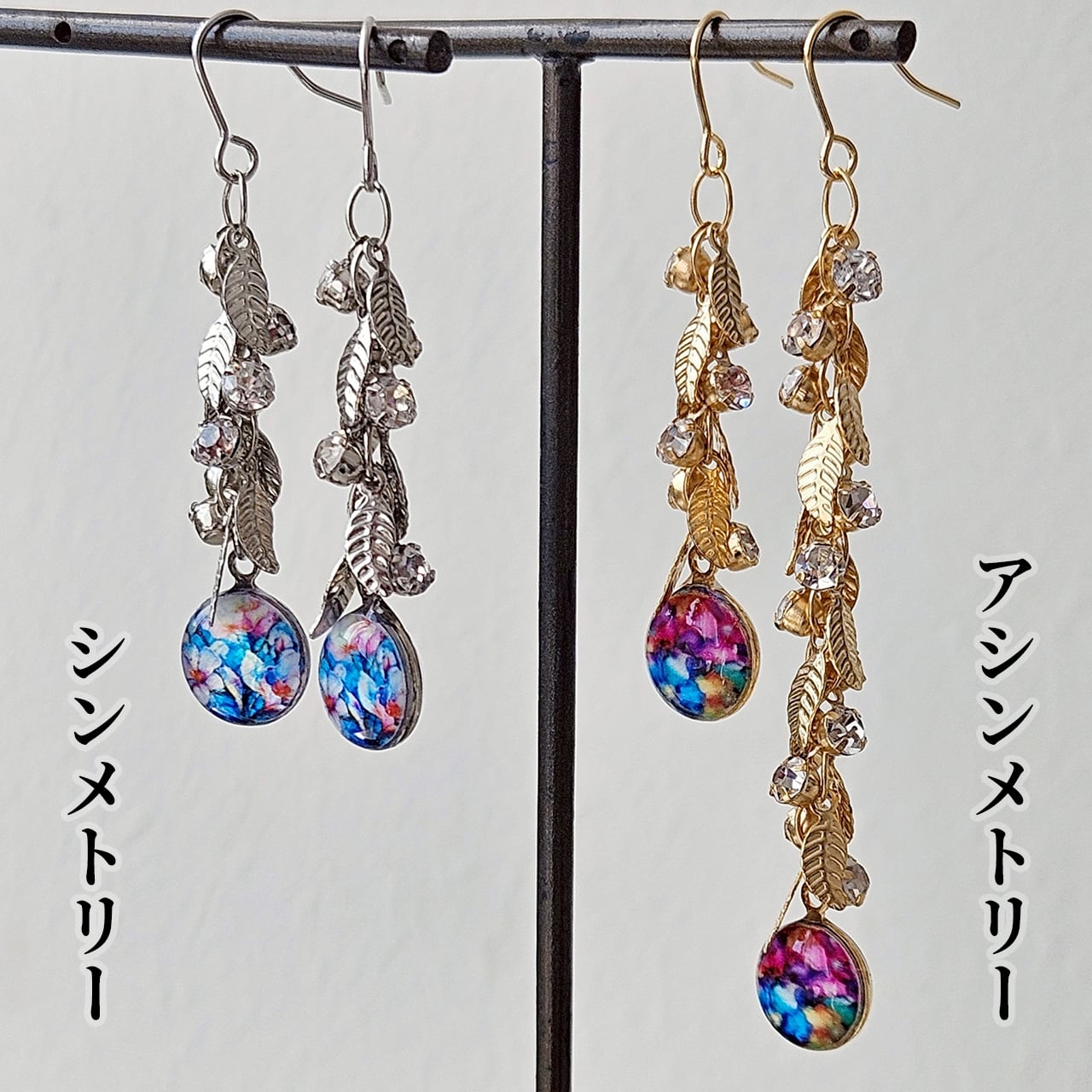 天然貝 螺鈿アート ★ リーフチェーン ピアス ・ イヤリング ※アレルギー対応 2Way仕様 シンメトリー アシンメトリー | Ayuプロデュース 【 ギフト ・ プレゼント 】