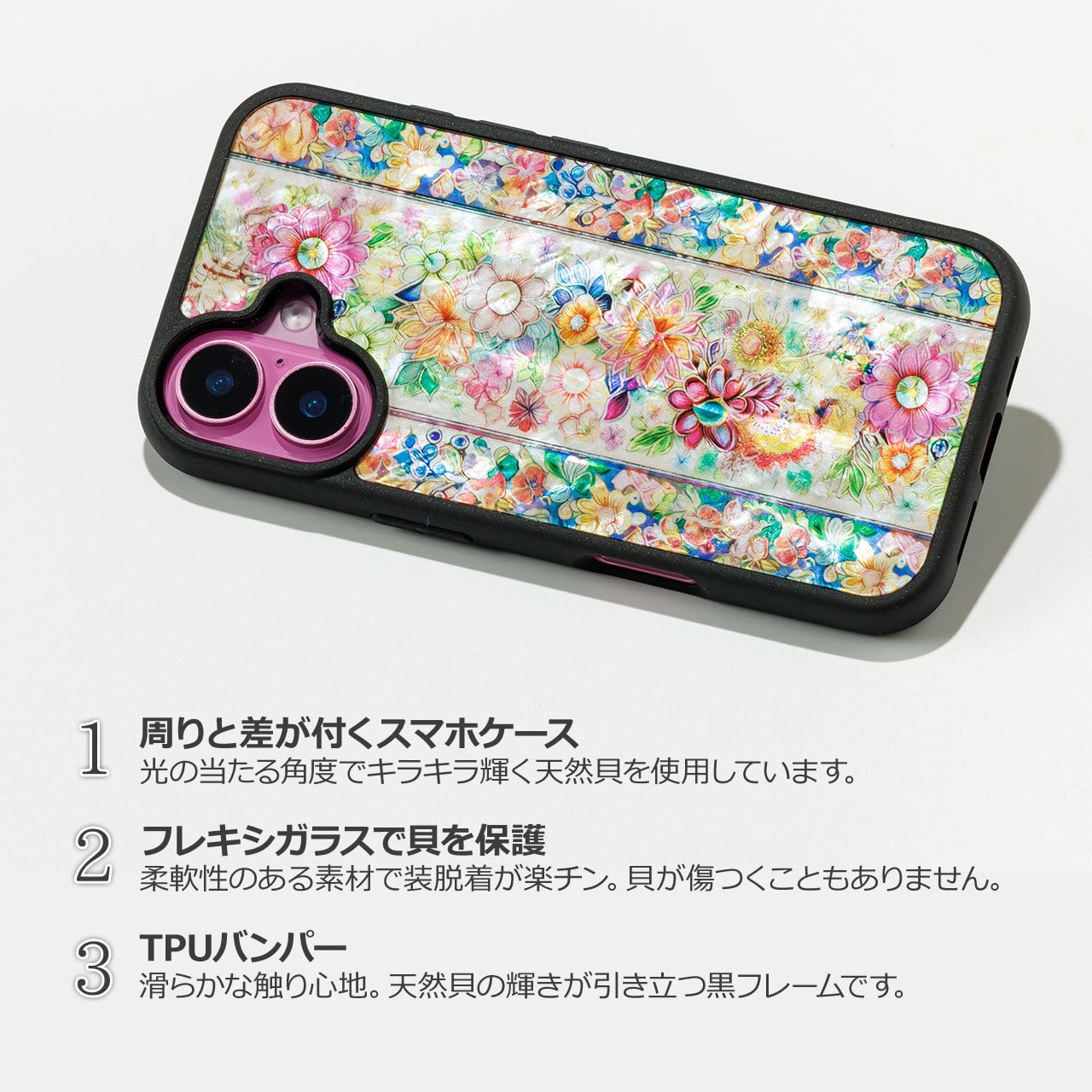 iPhone17 対応 ☆ 天然貝 螺鈿アート シェル 【 iPhone / Galaxy 対応】サニーサイドドリーム / ブルームベール |ハイクオリティ スマホケース ・マグセーフ MagSafe 変更対応