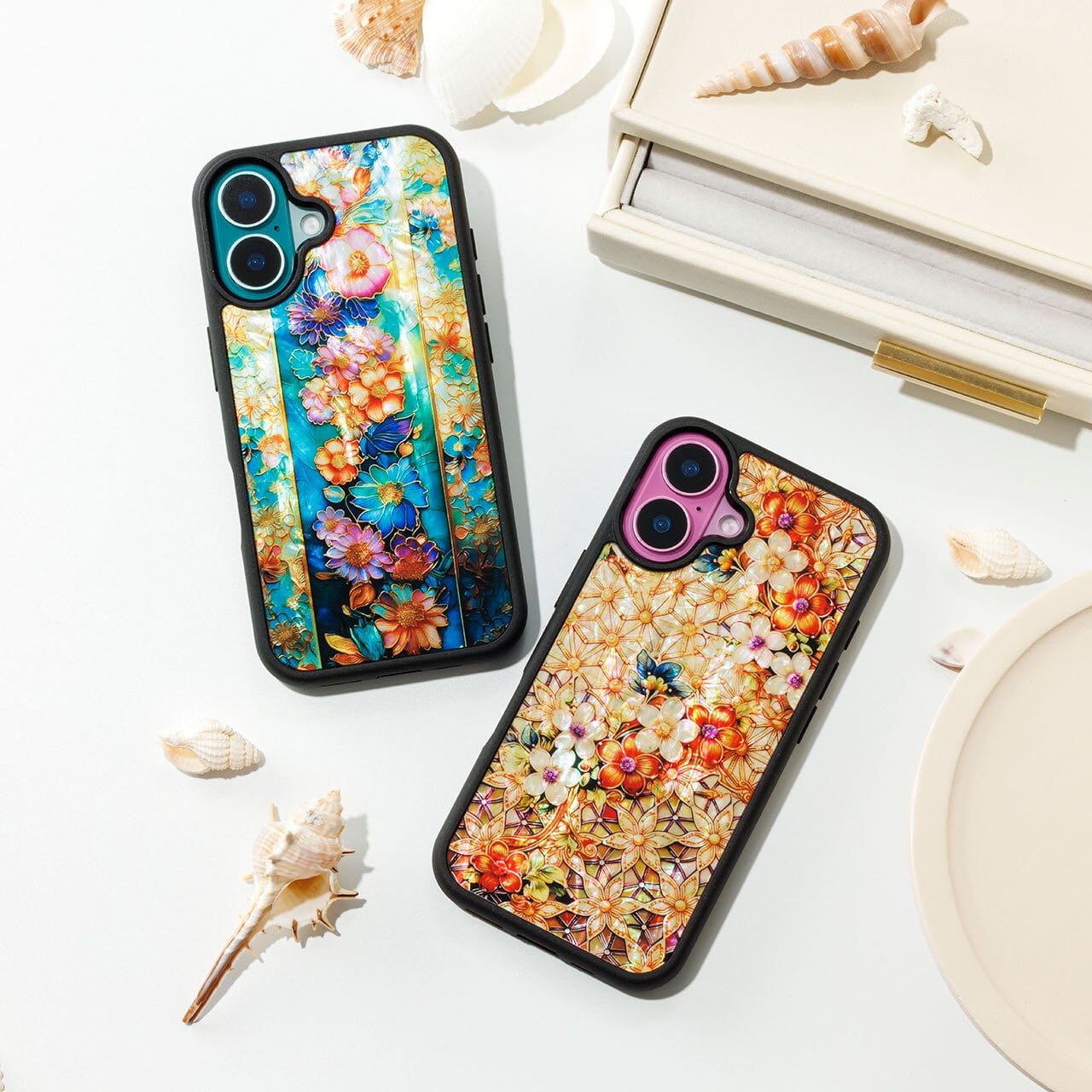 iPhone17 対応 ☆ 天然貝 螺鈿アート シェル 【 iPhone / Galaxy 対応】花宴/花雫 |ハイクオリティ スマホケース ・マグセーフ MagSafe 変更対応