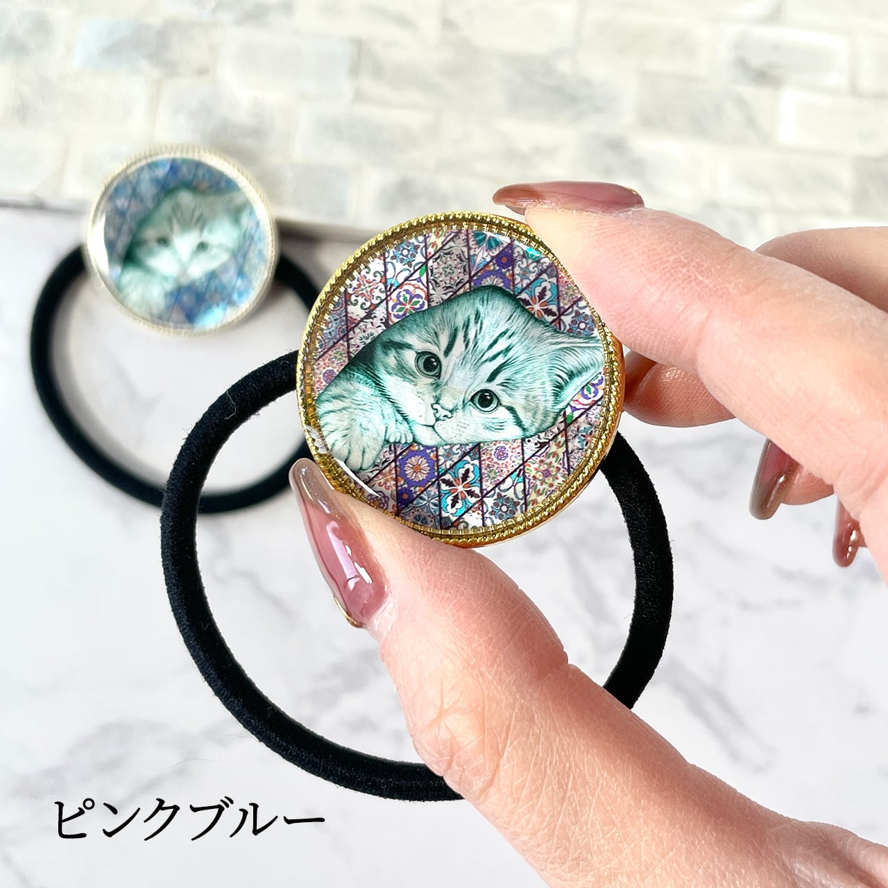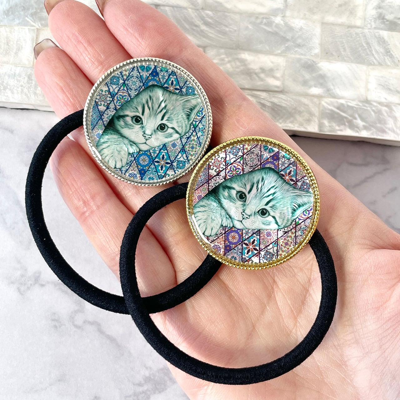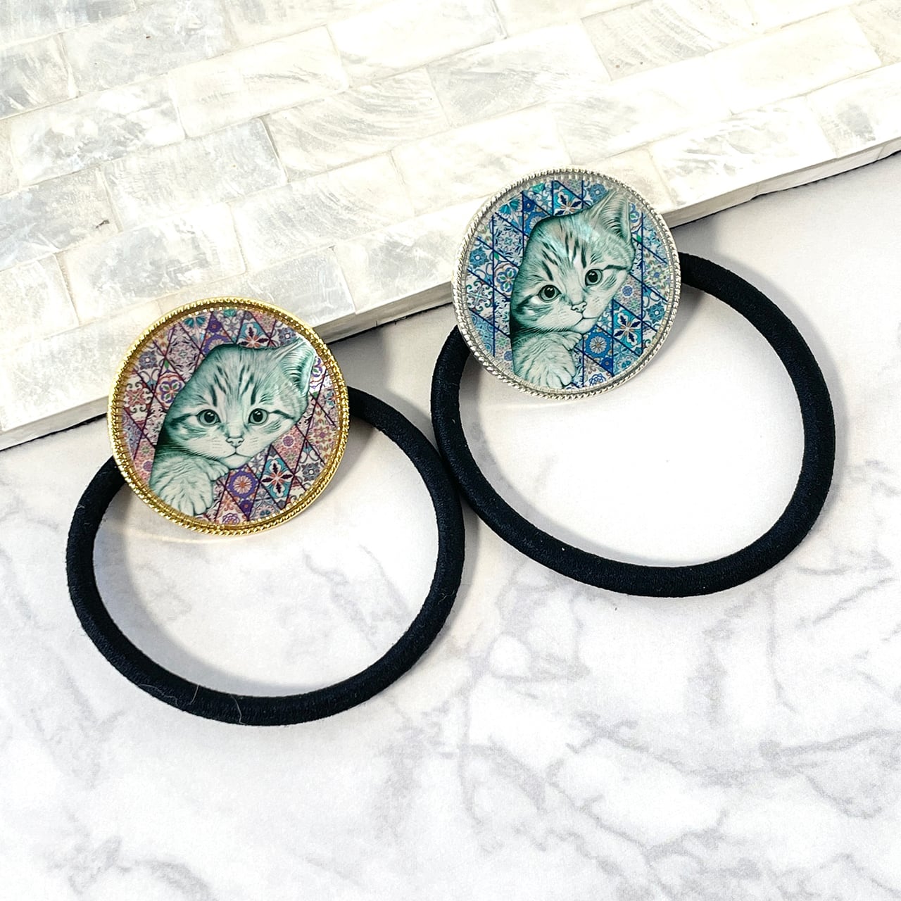 天然貝 ヘアゴム( ネコモロッコ )簡単可愛いまとめ髪に ★ シェル ・ 螺鈿アート ヘアアクセサリー