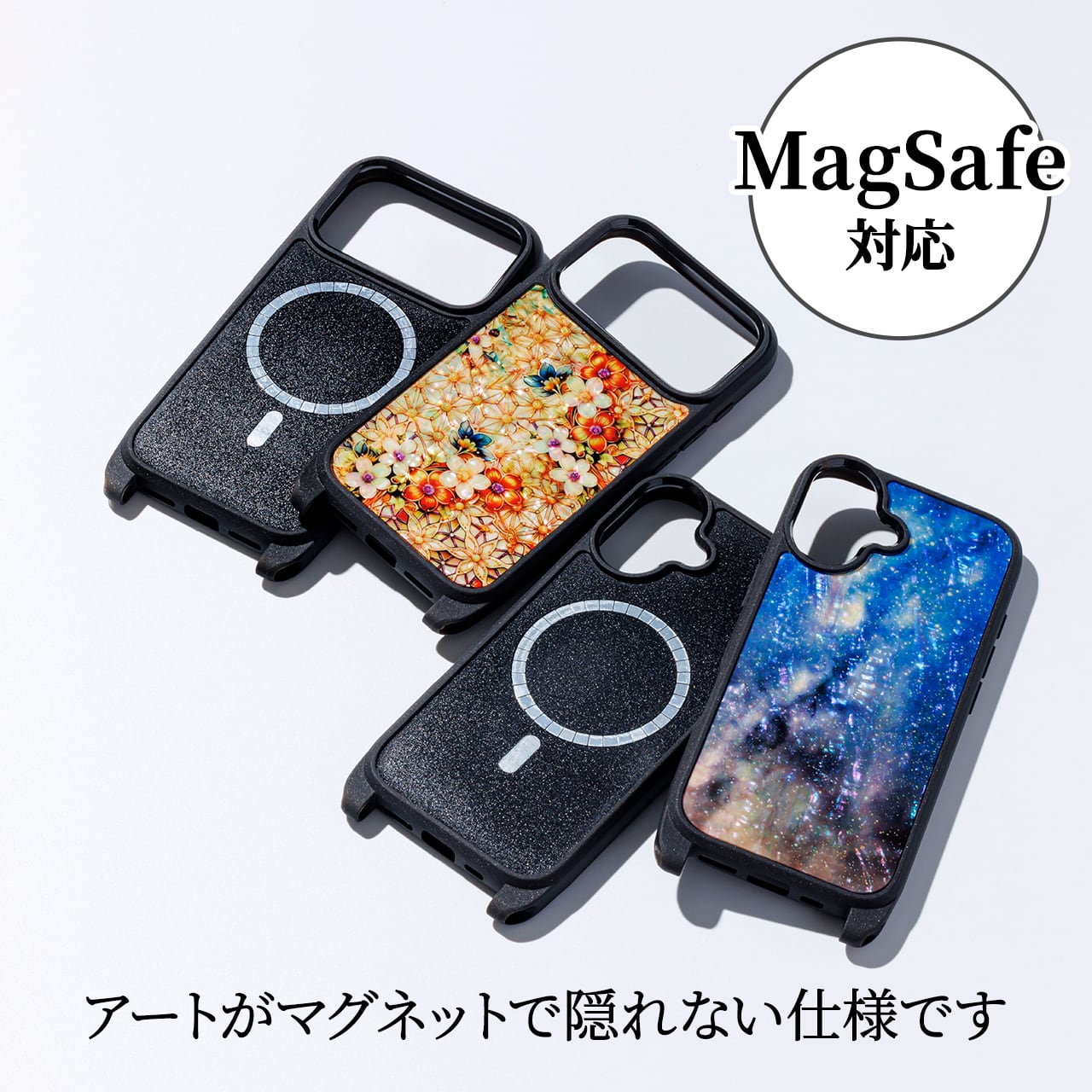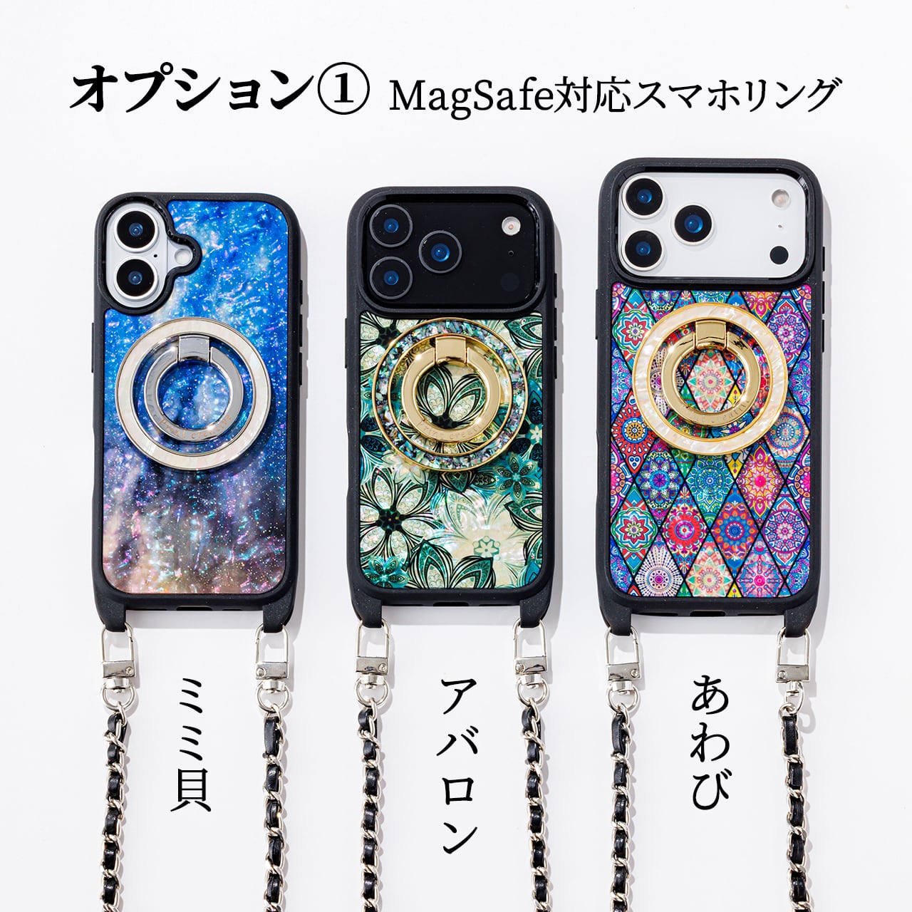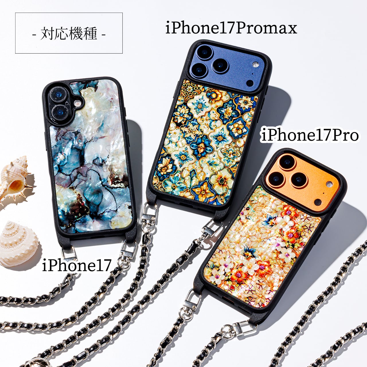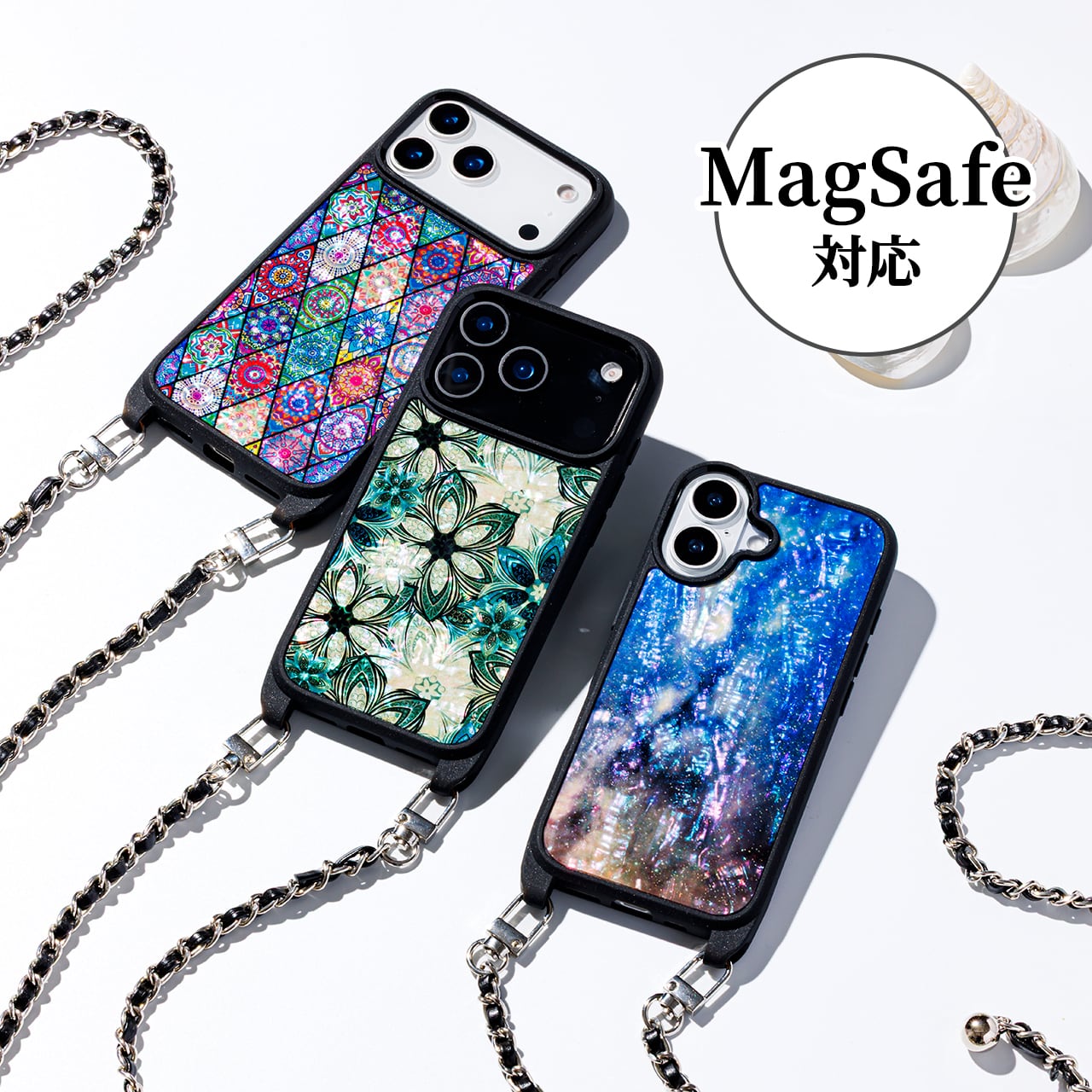 【 MagSafe 対応 スマホショルダー 】天然貝 螺鈿アート シェル (ハイクオリティケース/チェーン付き)| iPhone 17 / 17pro / 17promax 対応