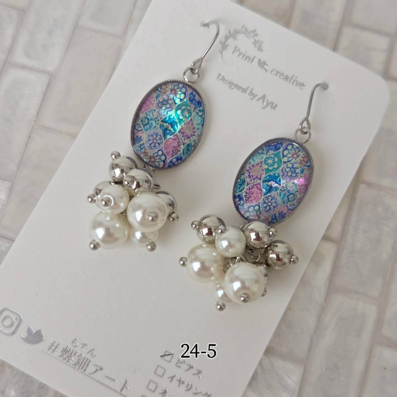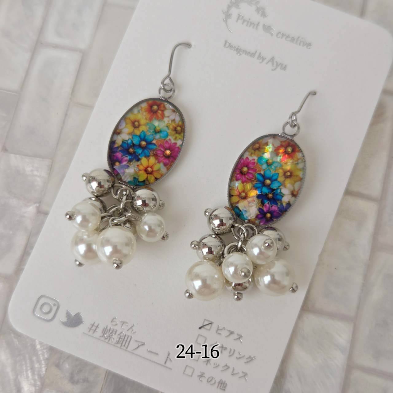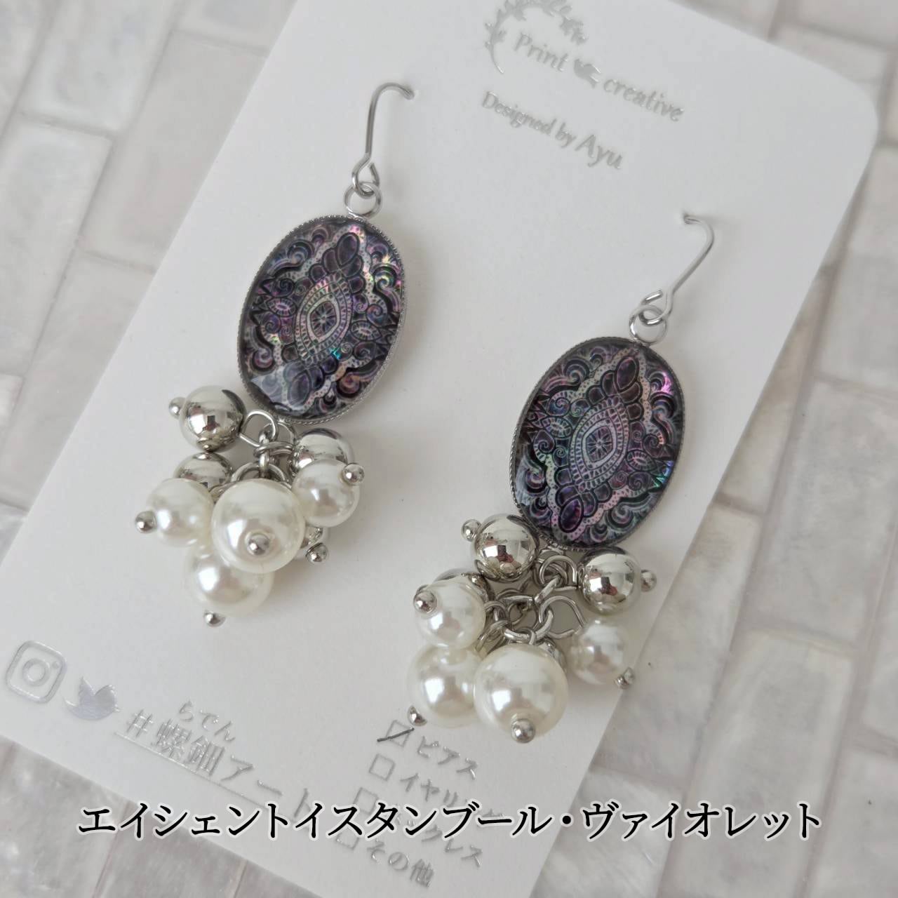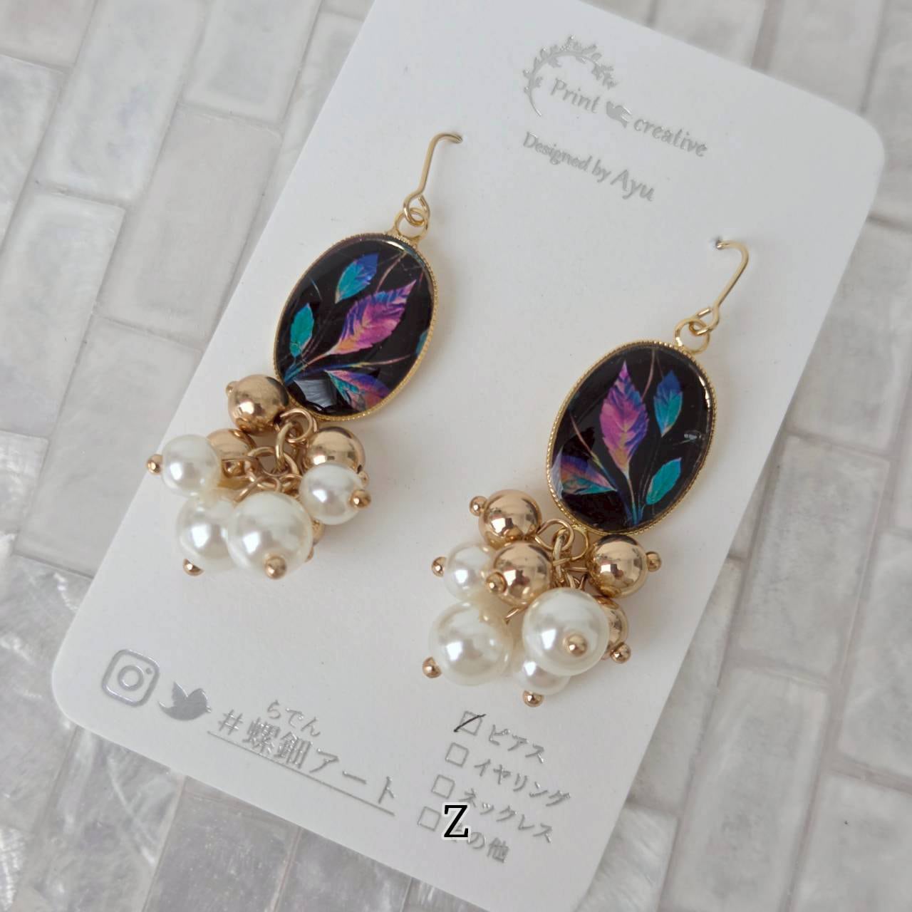 【数量限定】天然貝螺鈿アート★オーバルピアス・イヤリング ※アレルギー対応| Ayuプロデュース【ギフト・プレゼント】