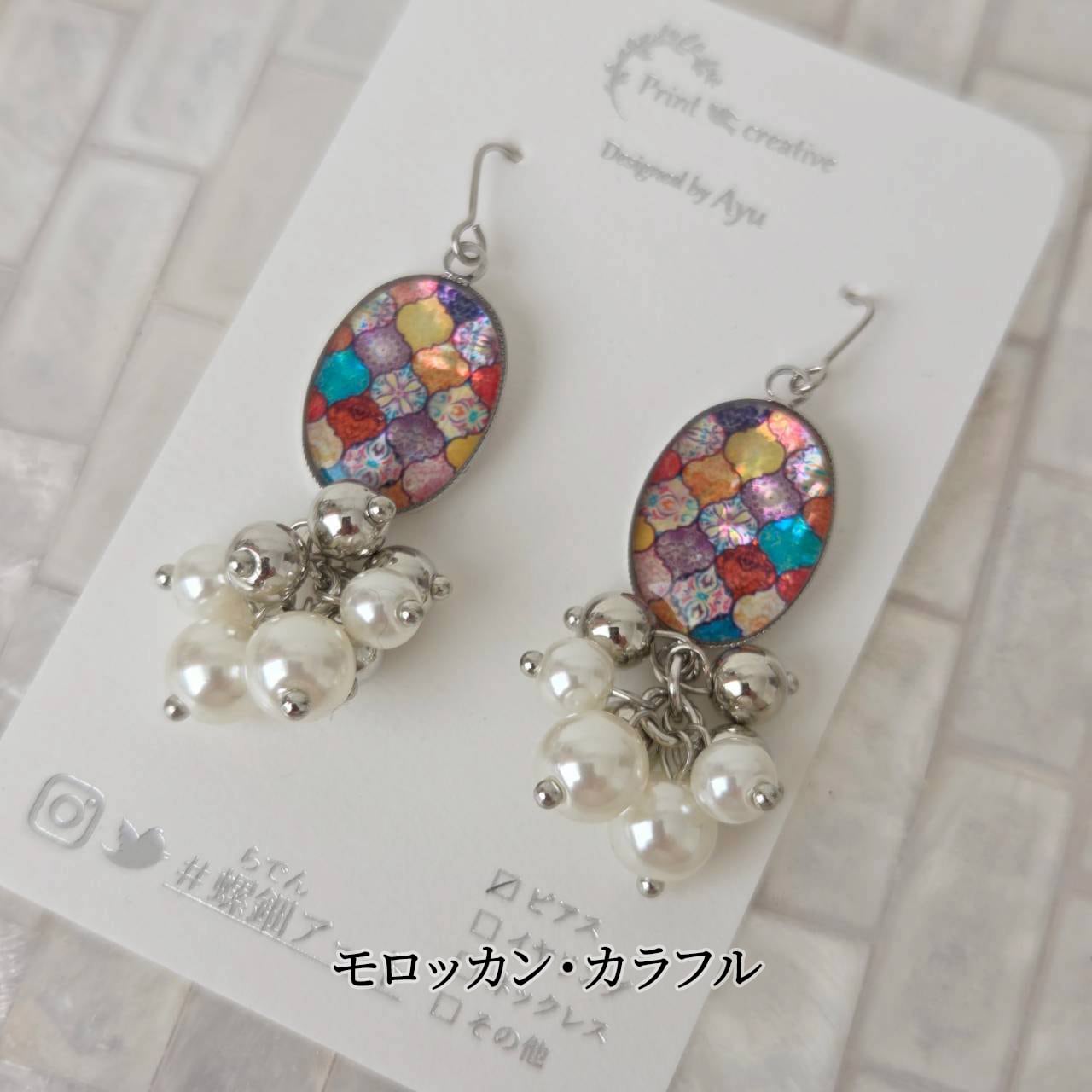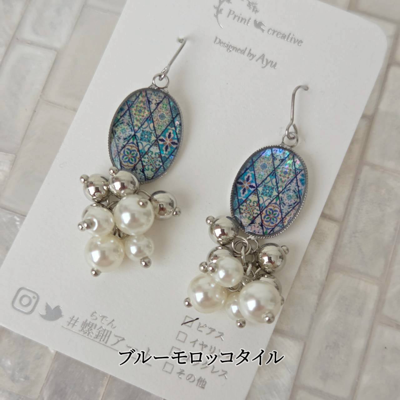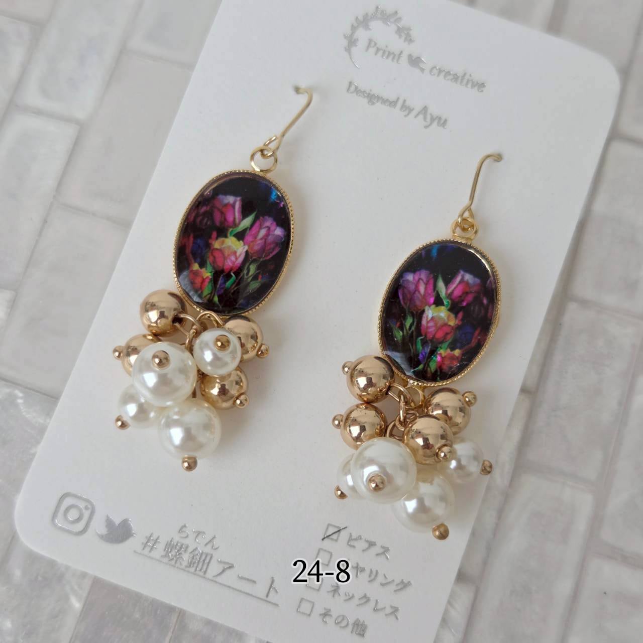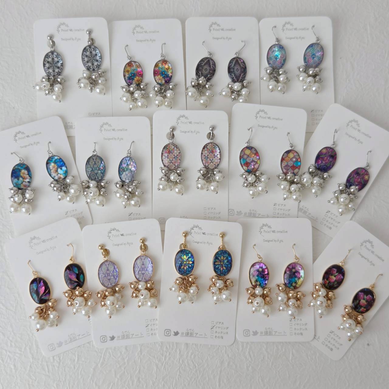 【数量限定】天然貝螺鈿アート★オーバルピアス・イヤリング ※アレルギー対応| Ayuプロデュース【ギフト・プレゼント】