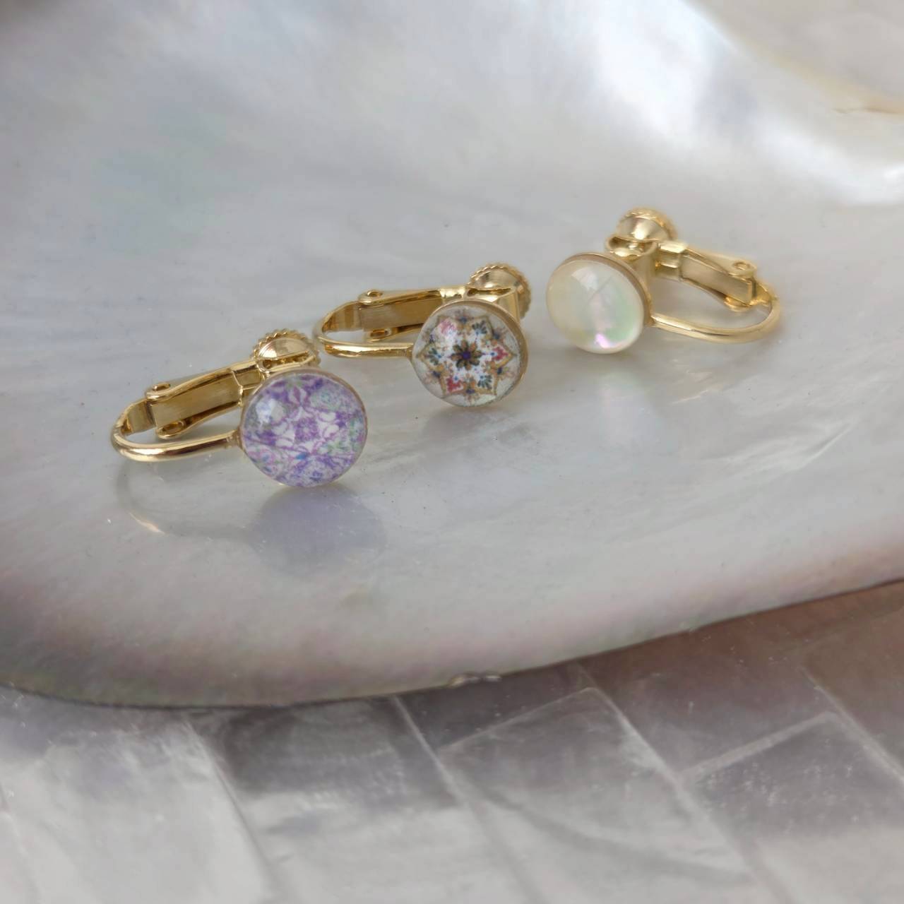 【数量限定】天然貝螺鈿アート★一粒ピアス・イヤリング(3粒セット)※アレルギー対応| Ayuプロデュース【ギフト・プレゼントにおすすめ】