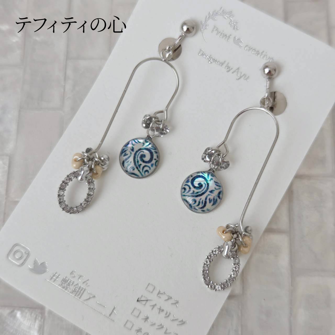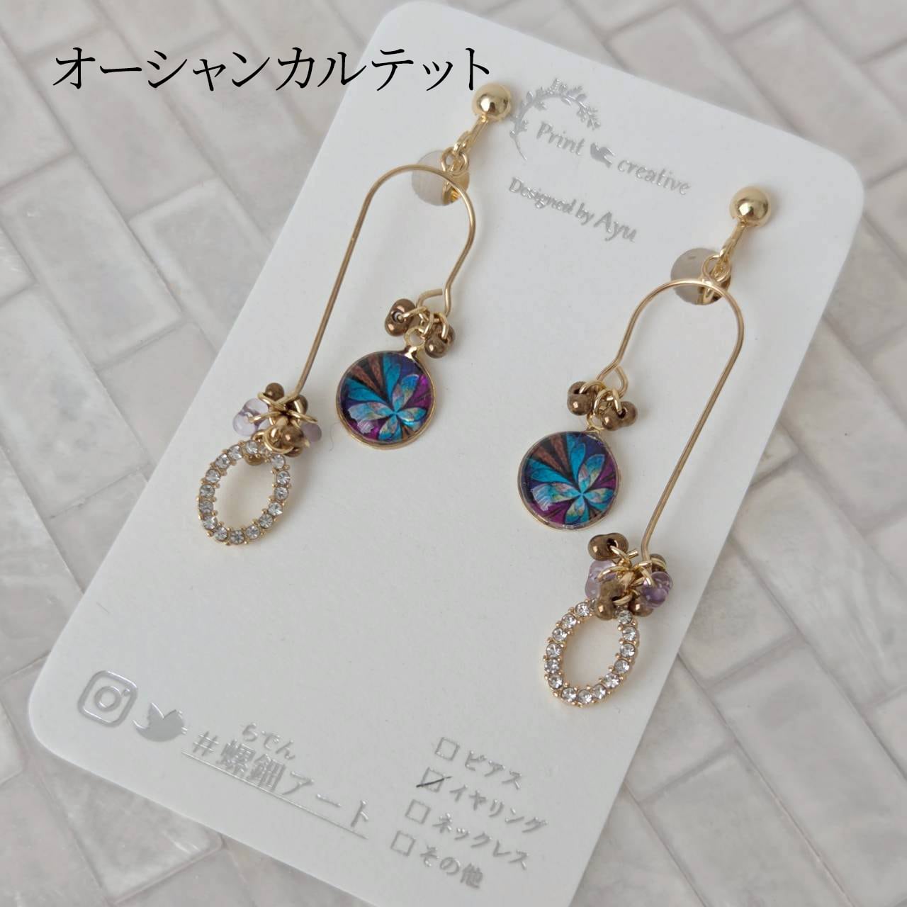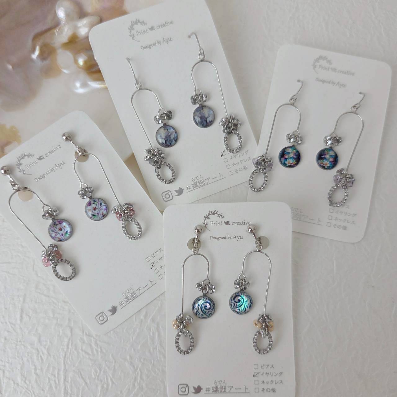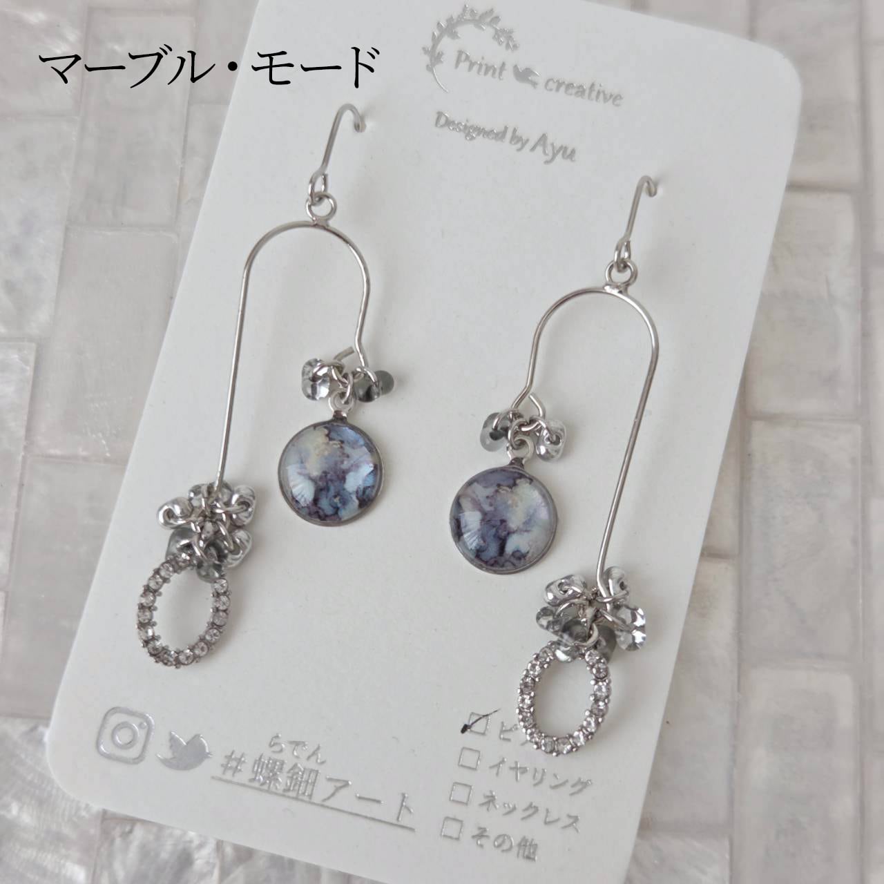 【数量限定】天然貝螺鈿アート★U字ピアス・イヤリング ※アレルギー対応| Ayuプロデュース【ギフト・プレゼントにおすすめ】