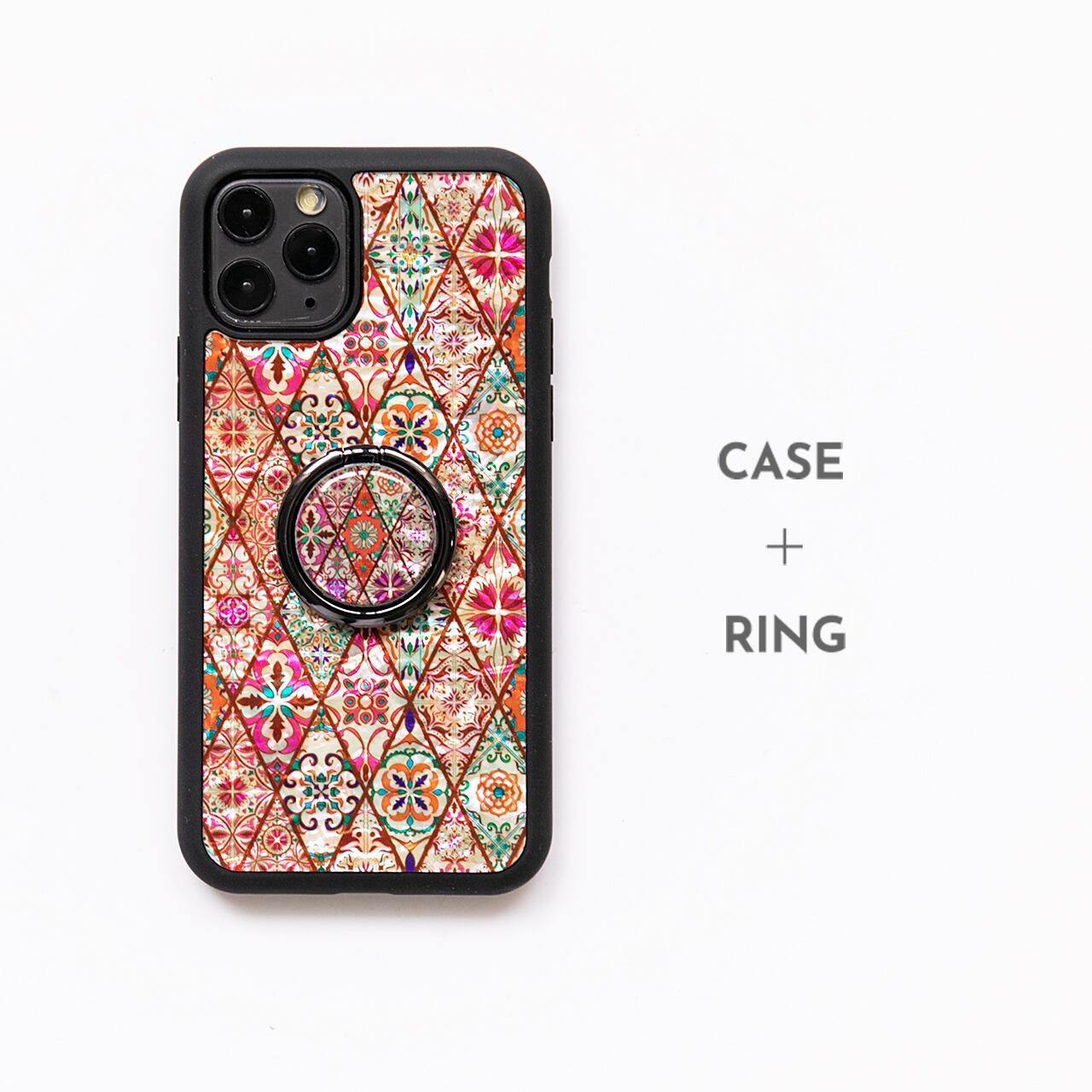 天然貝シェル★パステルピンクモロッコタイル(スマホリング・バンカーリング)|螺鈿アート|360度回転
