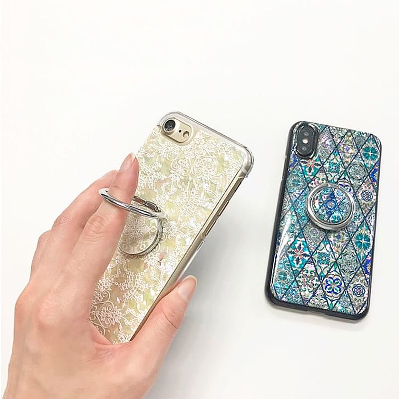 貝殻にアートを施す“螺鈿アート”というオリジナル技法を使用したスマホリングです。