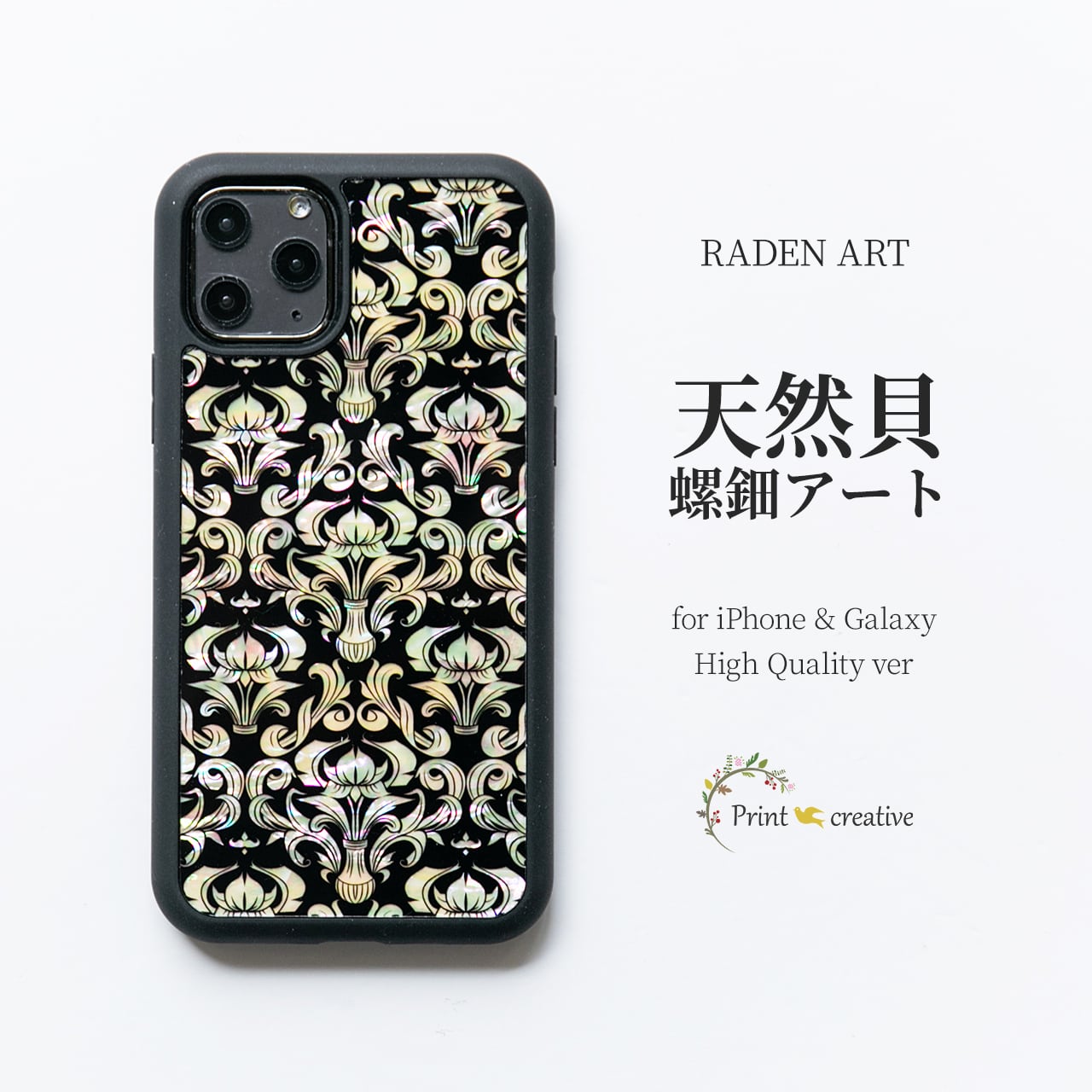 iPhone17 対応 ☆ 天然貝 螺鈿アート シェル 【iPhone/Galaxy対応】ダマスク |ハイクオリティ スマホケース ・マグセーフ MagSafe 変更対応