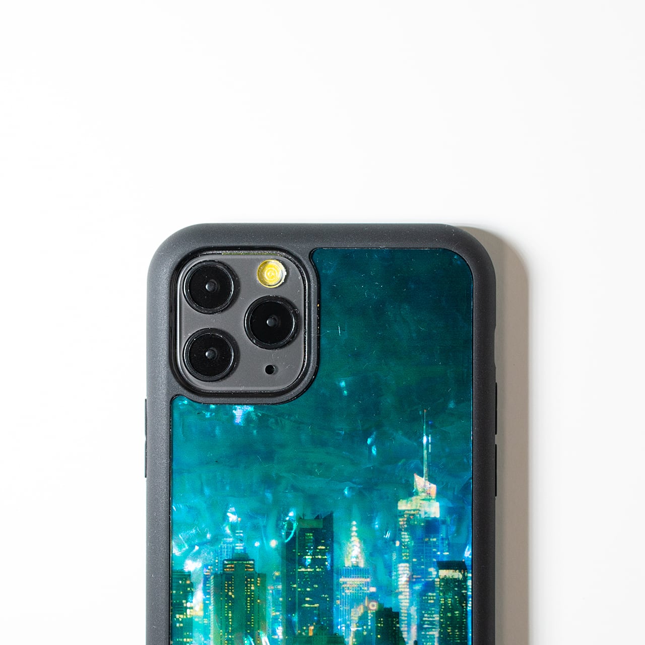 iPhone17 対応 ☆ 天然貝 螺鈿アート シェル 【 iPhone / Galaxy 対応】 都会の夜景 | ハイクオリティ スマホケース ・ マグセーフ MagSafe 変更対応