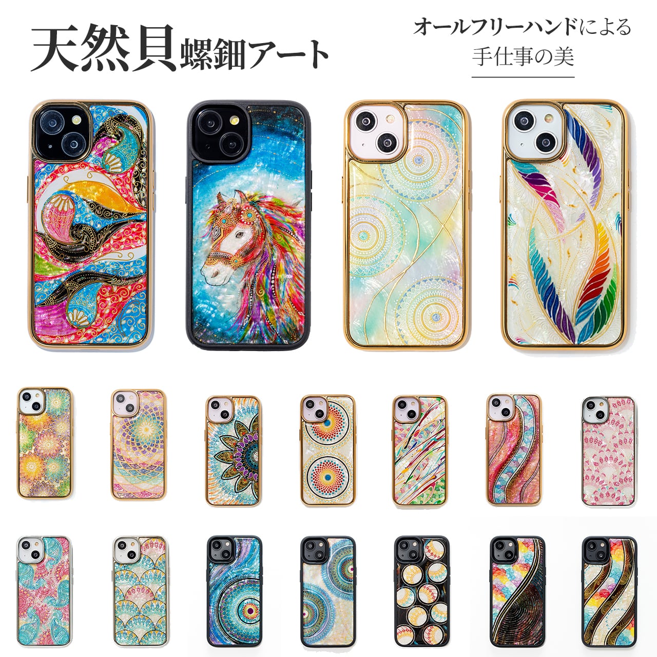【数量限定】手描き / ハンドドローイング ★ 天然貝 螺鈿アート スマホケース | Sheetal Design Raden Works