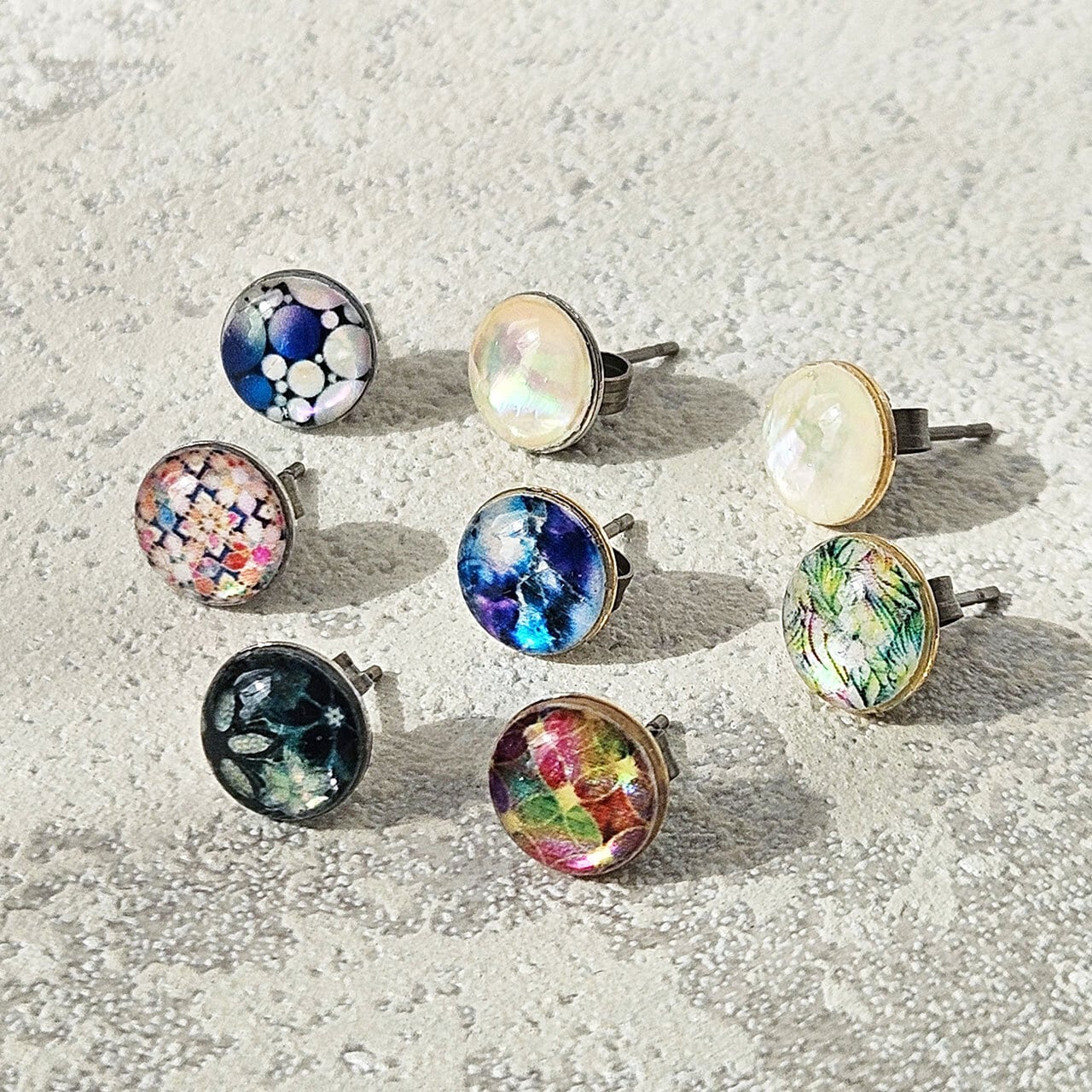 天然貝螺鈿アート★一粒ピアス・イヤリング(3粒セット)※アレルギー対応| Ayuプロデュース【ギフト・プレゼントにおすすめ】